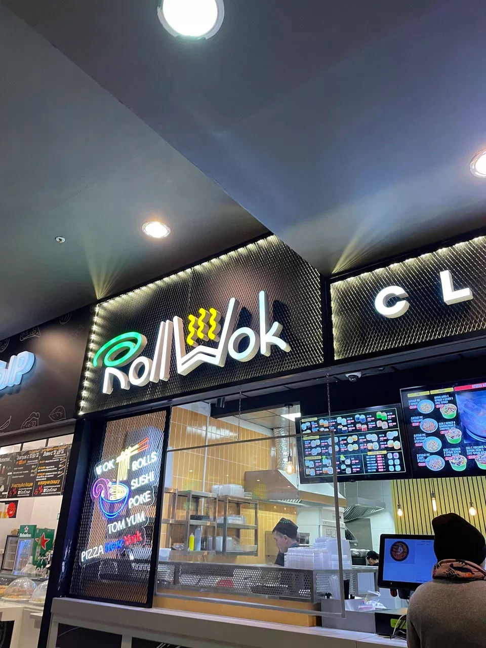 Разработка светящейся интерьерной вывески суши-бара «Roll Wok Club» в Черногорске